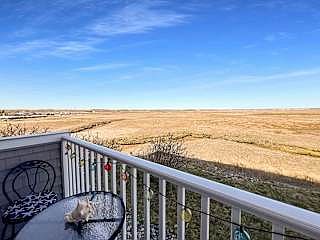Gorgeous sunset viewsStorage closetMarsh viewsVeranda for outdoor diningQueen-sized bed