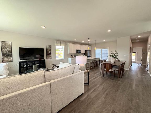 New Construction Single Family at Kettle Park West. The Spruce Plan has 3 bdrms, 2.5 bths, 9 ft ceilings and luxury vinyl plank flooring on the 1st level, a partial basement, attached 2 car garage, separate laundry & mud room on main level and an outdoor private patio area. Open concept plan includes a large kitchen with island, 42" designer cabinetry with crown molding & soft close doors/drawers, quartz tops, stainless steel appliances, & pantry. Second story boasts large primary bedroom with ensuite bath with dual sinks, & walk-in shower with glass enclosure and 2 additional bedrooms, 2nd full bath & linen closet. This low maintenance community includes a fully sodded homesite with lawn & landscape maintenance, & snow removal. Photos of model home- actual home inclusions may vary.