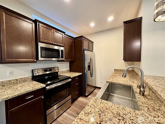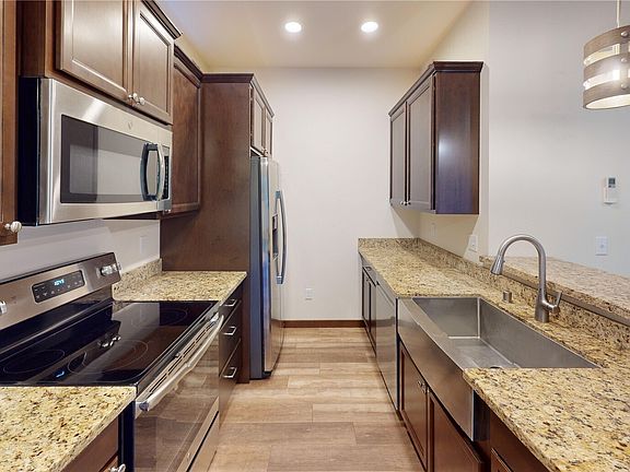 Stunning upgraded stone fireplaceMatching granite countertopsExpansive overhead storageBrand-new carpet
