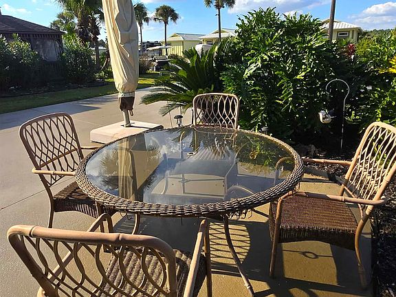 Luxury Class A Motor Coach Resort (Class A motorcoaches that are 15 years or newer and 32' or greater in length & Super Cs 10 years or newer) rated #1 in the South and in the Top 5 RV Resorts in the United States. Lot 71-419, is a North-facing, over-sized pull through lot. The site features a 300 sq ft casita with a living area, kitchen, separate bedroom and half bath. Relax in the spacious living area on the sofa (converts to a sleeper) and 2 rocker recliners. This area features a TV and is climate controlled with a mini-split unit. The kitchen is equipped with a deep sink, a buffet with storage underneath, cabinet storage and a full size refrigerator. The separate bedroom can accomodate overnight guests with a queen size bed. The bed is raised to allow for extra storage space in the cabinet underneath. The casita also features a half bath. The stained concrete floors make for easy maintenance. Outdoor entertaining is easy on the attached screened porch (12' x 16'). The porch features ample seating space with a conversation sectional with ottomans, three chairs and table. The porch has a louvered wall on the East side for privacy and pull-down shades on the West side for added shade. An extra screened door on the back side leads to a convenient outdoor utlility sink. As you move onto the extended patio area, enjoy outdoor dining on the large table with seating for six and large shade unilever umbrella. Additional features include three large storage boxes and custom landscaping. Guests will also enjoy quick access to the Southeast bath house which offers private restroom/showers and laundry facilities. Resort amenities include a 6,000 sq ft clubhouse, zero entry infinity edge pool, hot tub, well-appointed fitness center, wet/dry sauna, movie theater room, stocked lake, dog parks & dog wash, and daily activities for guests. Low COA fees and property tax! Buyer to verify all information during due diligence.