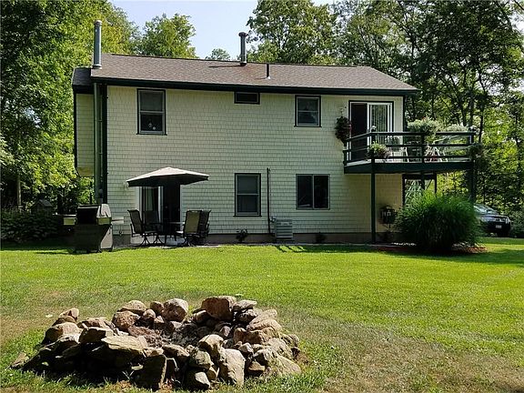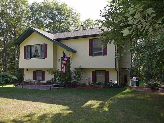 Enjoy this lovely 3 bedroom ISDS with 2 bed up and 1 bedroom lower. Open Kitchen, dining and living with cathedral ceilings. Sliders to deck over looking back yard. Lower has 1 bedroom, workshop, laundry, family room with wood stove and sliders leading to a patio on 1 acre of manicured grounds with a firepit. Large 16' x 24' Outbuilding with loft and electricity. Set back off the road for privacy yet convenient to all amenities. Elementary school within 1/2 mile. Library within a mile.