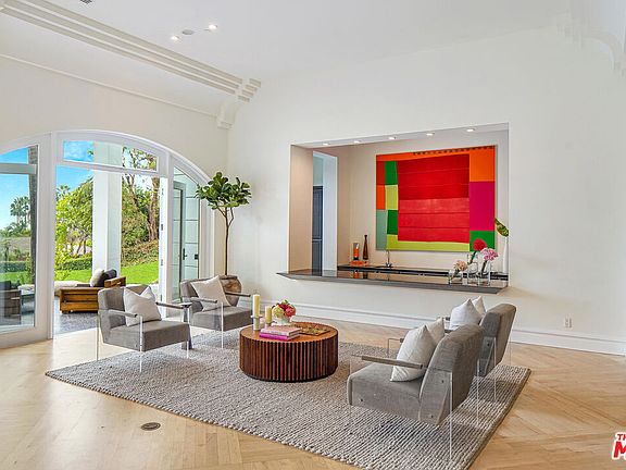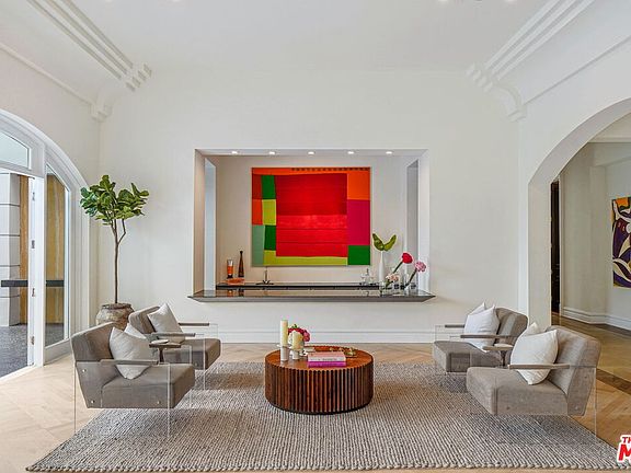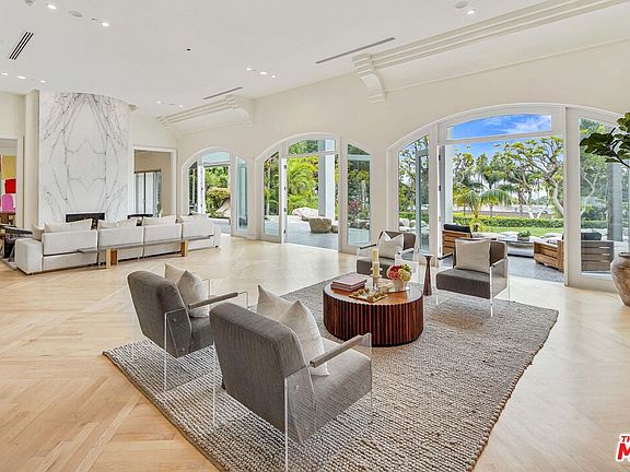 Located on one acre in the prestigious Trousdale Estate neighborhood of Beverly Hills, a completely private and gated sanctuary...The Robert House. Meticulously crafted by famed architect Wallace Neff, this masterpiece was impeccably designed to frame the awe-inspiring city of LA. The sprawling, single-story home is airy and light-filled throughout, with soaring ceilings perfect for the art enthusiast. A dramatic open living room features sunken bar, marble fireplace, and oversized French doors that create an effortless indoor-outdoor flow to the sprawling, resort-style grounds. Features include 5 en-suite bedrooms, gourmet kitchen, and much more. Principle suite is the epitome of relaxation with fireplace and French doors leading to the private backyard. Lush trees set a serene backdrop to the beautifully landscaped grounds complete with covered loggias, pool, built-in barbecue, grotto and rolling green lawns. Set across the street from the highest sale in Trousdale and other celebrity homes, this timeless estate perfectly embodies California living at its finest. Live among the stars and titans of industry at the most coveted address in all of Beverly Hills/Los Angeles.