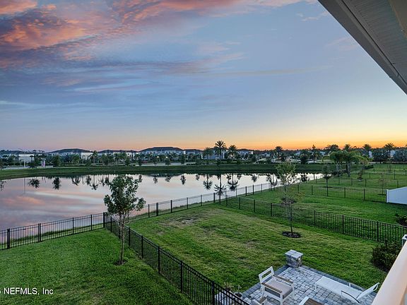 Live the vacation lifestyle every day at 419 Rum Runner Way in Beachwalk! This spacious 4BR/3BA townhome offers over 2,500 sq ft with an open-concept kitchen and living area perfect for entertaining. Enjoy sunrise and sunset views from the primary suite's private balcony overlooking the lake. The spa-like bath features dual sinks, a large walk-in shower, and generous closet space. Upstairs also includes a bonus family room ideal for casual living. The fenced backyard is ready for your furry friend or quiet evenings outside. Located in one of only two neighborhoods with private gated access to Beachwalk's 14-acre Crystal Lagoon — golf cart or walk to paddle-board, kayak, or relax at the swim-up bar. This home is a rare find in one of St. Johns' most desirable resort-style communities!
