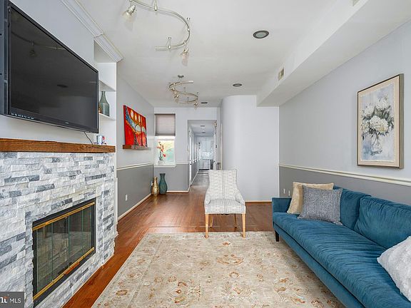 Welcome to 419 S Ann Street — a thoughtfully renovated and impeccably maintained residence located in the heart of historic Fells Point. Ideally situated just steps from the waterfront, award-winning dining, and the green spaces of Patterson Park, this property offers the perfect blend of refined urban living and comfort. The main level features solid hardwood flooring throughout, sophisticated curved walls, and a striking custom stone fireplace with built-in shelving. The spacious dining area flows into a fully updated gourmet kitchen, equipped with quartz countertops featuring a waterfall edge, full-height custom tile backsplash, stainless steel KitchenAid appliances, an eat-in bar, and custom cabinetry designed for both beauty and function. Direct access to a private rear patio creates a tranquil outdoor retreat, complete with custom stonework, horizontal privacy fencing, and a mature fruiting fig tree—ideal for entertaining or quiet relaxation. The second floor comprises two generously proportioned bedrooms, each outfitted with custom California Closet systems and designer window treatments. The primary suite includes a spa-inspired bathroom with a deep garden soaking tub and a 42-inch vanity offering additional storage. A second full bathroom serves the floor, supporting both functionality and convenience. The third level offers a versatile loft area well-suited for use as a home office, guest quarters, or additional living space. This level also includes direct access to a private rooftop deck, recently refinished, and enhanced with a skylight. The deck provides an exceptional setting for outdoor enjoyment with sweeping neighborhood views. Significant system updates include a high-efficiency air conditioning unit, a Nest Learning Thermostat, energy-efficient windows throughout, and a synthetic lawn installed along the side yard for year-round greenery and low maintenance. Select exterior landscaping and established plants—including the fruiting fig tree—will convey with the sale of the property. This exceptional Fells Point residence is truly move-in ready, perfectly located in Fells Point, close to Canton, Harbor East, Johns Hopkins and all major highways.