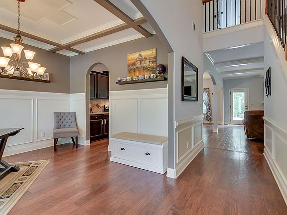This Three Car garage home is located at the end of a private cul de sac on a large home site. The backyard backs up to a large greenspace and affords its owners a very tranquil setting. The home boasts 5 bedrooms and 3.5 Baths. This unique plan has 2 owners suites. One of the owners suites is located on the main level. A real treasure to find in a home this size. Hardwood floors great your guests throughout the main level with the exception of the Downstairs owner suite. This home has upgrades galore. From the Fully tiled owners showers to the granite counter tops in the kitchen and owners suites to the interior trim package. The kitchen offers stainless steel appliances, oil rubbed bronze fixtures, large kitchen island and a pantry. The owners suite has trey ceiling and a large walk in closet. This open floor plan is great for entertaining! Did I mention the hard to find three car garage? The home comes with an outdoor fire pit and a workshop in the backyard with power!