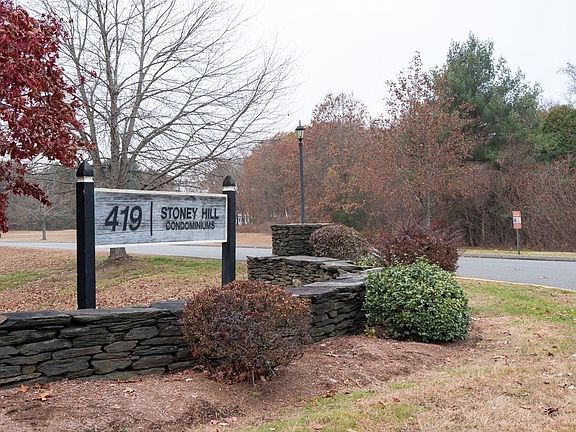 Rare opportunity for this 2 bedroom, 2 bath GARDEN STYLE ~ END UNIT condo with an attached one car garage in Stoney Hill Condominium Complex! This unit has so much to offer and features 1st floor laundry, fireplace in living room w/large bow picture window, deck overlooking woods, and a large eat-in kitchen. Professionally landscaped property w/lots of amenities! The complex has a community in-ground pool, club house, & putting green! Subject to obtaining license to sell.