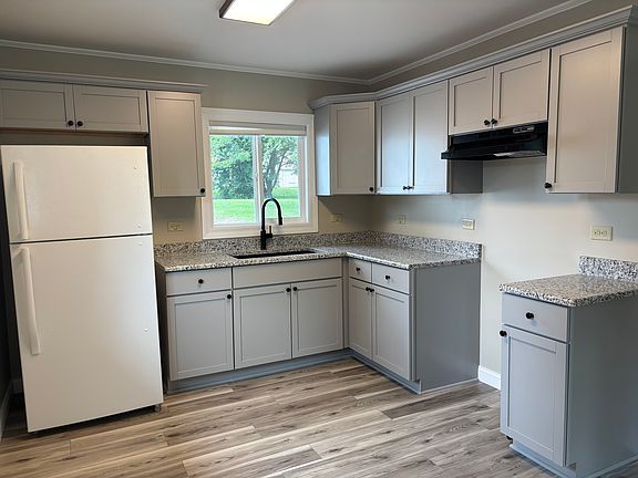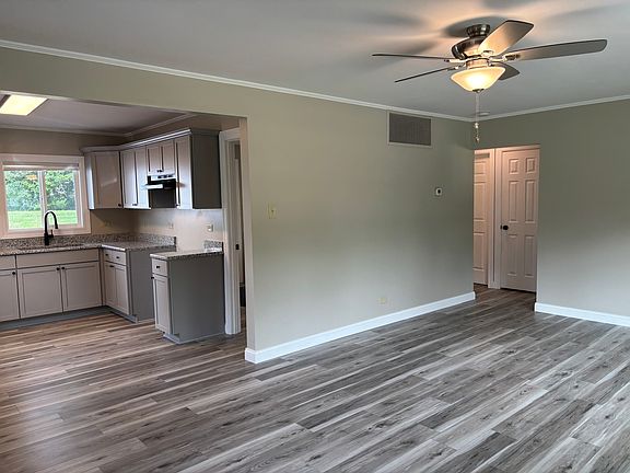 NICELY REHABBED 2 Bdr. RANCH HOME with a 2 CAR DETACHED GARAGE. It features a GRAY CABINET KITCHEN w/BLACK HARDWARE, GRANITE COUNTER TOPS, EDGE-LESS SINK and HIGH ARCH FAUCET. VINYL PLANK FLOORING, SIX PANEL DOORS & NEW WIDOWS w/Quality Blinds through-out. It has !8"x12" Ceramic Tiled Bath with a GRAY VANITY, MEDICINE CABINET with BLACK FIXTURES & BRUSHED NICKEL LIGHTING. Located on a SERENE low traffic ISLAND Cul-De-Sac.