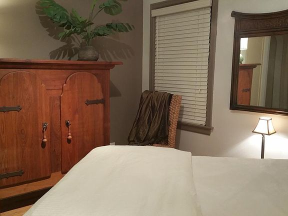 It is drop-in ready - hardwood floors, marble and quartz, completely furnished throughout with leather couch, chair, upscale furniture, all appliances, gas stove, fully appointed kitchen (dishes, pots and pans, bakeware, linens, detergents, and cleaning supplies, etc.), laundry, outdoor BBQ grill, patio table, umbrella, chairs, and automatic sprinkler system. Home setup on main floor includes living room, kitchen, breakfast nook, master bedroom, bath, and dedicated office with daybed. Downstairs has a twin with trundle bedroom for guests, bath, laundry, and reading room with fireplace. All bedding and towels are provided. Absolutely no smoking. Only 1 dog allowed with extra 800 dollar damage deposit.Turn key and move in ready. You will love it!