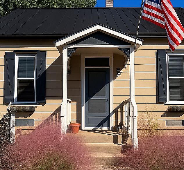 Tasteful landscapingNice level yardStanding seam metal roofExcellent condition