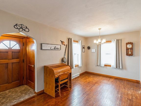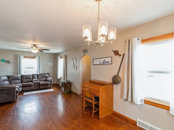 Welcome home, to this charming 3 bedroom, 1 bath home, that is located just a few blocks from the school. Featuring hardwood floors throughout, the recently renovated kitchen boasts butcher block countertops and a subway tile backsplash. Enjoy the convenience of newer roof and windows. The basement offers potential for a second bathroom and family room. Outside, the large backyard is fully fenced, and includes two sheds for ample storage, one of which has been transformed into a workshop.