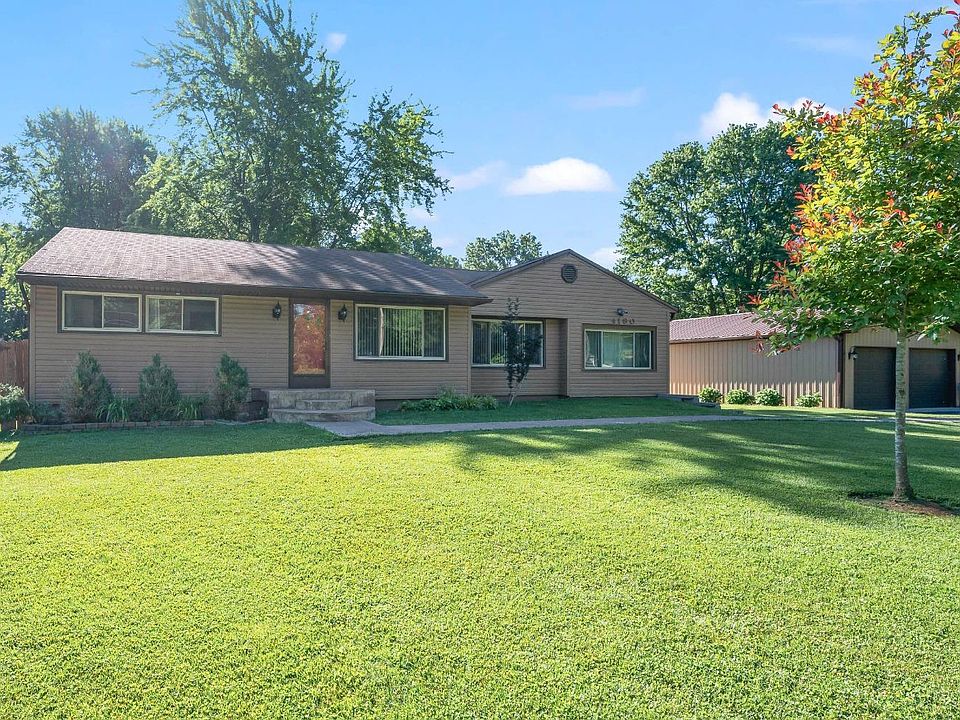 Opportunity awaits on this quiet cul-de-sac street just minutes from everything! Beautiful 1.37 acre lot with large fenced garden, updated kitchen and bathroom, updated HVAC and oversized 4 car garage. Original 2 bedroom, 1 bath ranch has been expanded through the years and now includes 13 x 24 family room with hardwood floor, wood burning fireplace, closet space and walk-out, additional half bath, first floor 11 x 23 recreation room with laundry rough-in, sink rough-in, plenty of counter space and cabinets for extra storage. The basement has 3 additional finished rooms with carpeting and closets, original laundry room and walk-up. The study on the first floor can also be used as a bedroom. Property is being sold as part of an estate sale and transfer will be as-is.