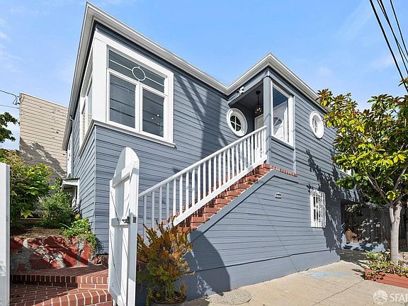 Set on a sunny corner lot in Bernal Heights, this fully detached home features a naturally bright interior with windows on 3 sides, a beautiful garden yard, and pride of ownership with updates for modern living. First time on the market in 25 years! Fragrant magnolias line the street to your 1-car garage and lower level with laundry, large bonus bedroom, full bath, and storage. Upstairs features newly refinished hardwood floors throughout, plus permitted updates to plumbing, electrical, HVAC and more. Living room has a wood-burning fireplace, and the formal dining room is ready for gatherings. Updated kitchen is freshly painted with Shaker cabinets and stainless appliances including a Bosch dishwasher and new fridge. Enjoy eat-in dining and direct access to the deck overlooking your flagstone patio and professionally landscaped garden with automated sprinklers, Meyer lemon tree, flowering Brugmansia, and much more. The primary bedroom also has sliding doors to the deck for indoor-outdoor living and garden views. Located close to Cortland Avenue's shops, library, restaurants and cafes, this home offers easy access to the Alemany Farmers Market, freeways, Holly Park, and St. Mary's Playground and Dog Park. Peaceful, village-like charm with the convenience of city living.