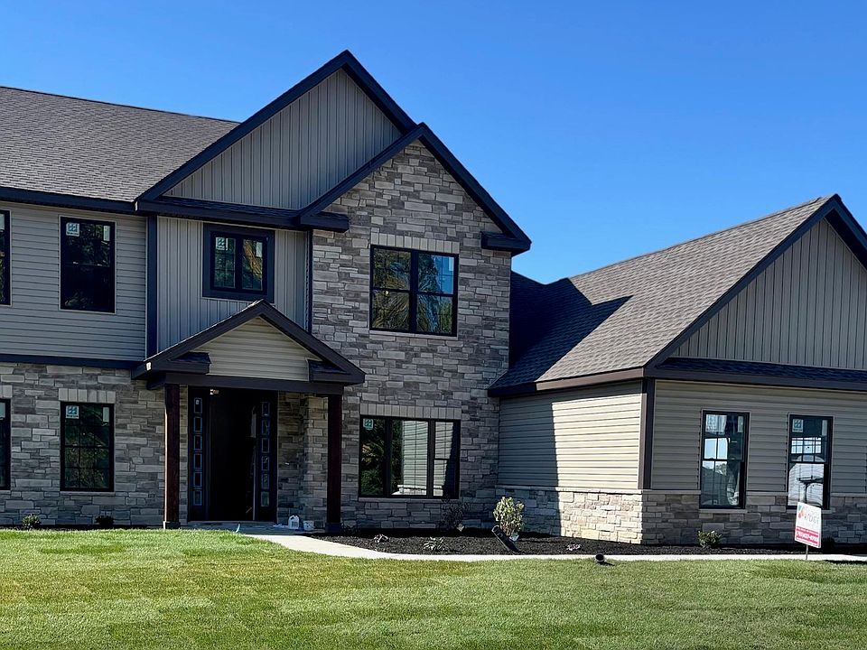 This stunning new construction by StoneRidge Homes, perfectly situated on a premium corner lot in the highly desirable Arbor Chase community of West Lafayette offers 3010 square feet of beautifully designed living space, this 4/5-bedroom, 2.5-bath residence blends thoughtful craftsmanship with modern luxury. The main level features an inviting entryway that opens to a spacious great room with fireplace and bar area, a bright dining area, and a chef-ready kitchen with a large island, walk-in pantry, and abundant cabinetry. A private main-floor owner’s suite includes a spa-inspired bath with a tiled shower, dual vanity, soaking tub, and a generous walk-in closet. Additional conveniences on the first floor include a versatile office that can be a fifth bedroom, mud/drop zone, and an oversized side-load 3-car garage. Upstairs, you’ll find a versatile loft, three large bedrooms—each with walk-in closets. The layout provides excellent flexibility for families, guests, or work-from-home needs. Outdoor living is elevated with a covered back patio, perfect for relaxing or entertaining. The corner lot offers additional yard space and enhanced curb appeal. Located in sought-after Arbor Chase, residents enjoy proximity to top-rated schools, restaurants, shopping, Purdue University, and nearby parks and trails. A perfect blend of luxury, function, and StoneRidge quality—this home is move-in ready and built to impress.