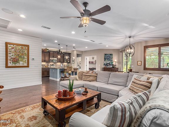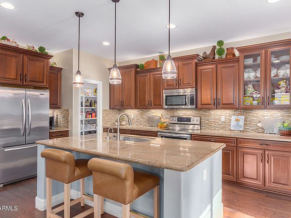 Here it is, your beautiful new home! From the wrought iron front door, to the tranquility of the backyard and everything in between, this exceptionally well-maintained, highly upgraded, certified SRP Energy Star home, stands above the rest! You will not be disappointed. Upgraded cherry cabinets, Kitchen Aid appliances, rich granite and pretty backsplash, upgraded flooring, large baseboards, beautiful bath tile surrounds, rain shower, oil rubbed bronze hardware, real pecan wood shutters throughout, upgraded lighting, pebble surface salt water pool w/remote lighting and water feature, are just a few of the wonderful amenities of your new home! Add to that, no one behind you, for room to breathe and desired privacy. Whether entertaining or spending a quiet evening alone, this home is perfect!