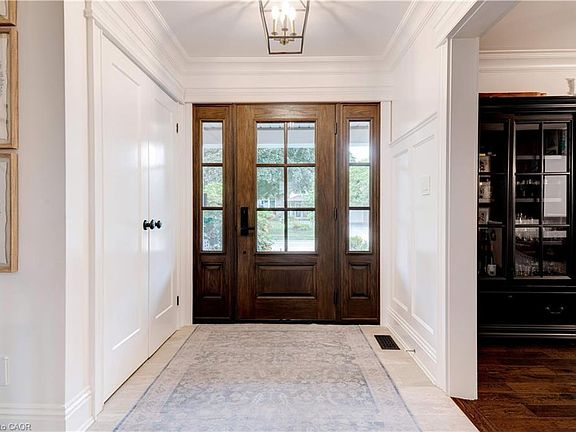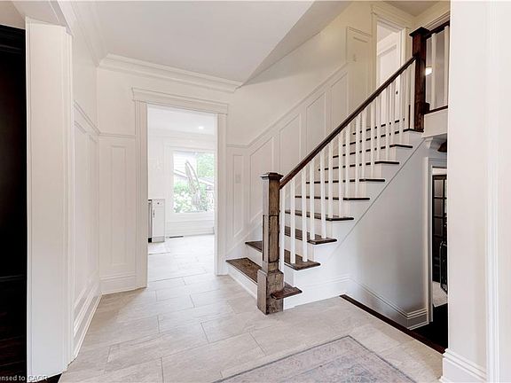STUNNING sprawling 4-bedroom home in South Burlington's sought-after Shoreacres neighbourhood. Showcasing true pride of ownership. Custom millwork 7-inch baseboards, wooden shutters, antique scraped oak hardwood floors throughout. Recently renovated sun-filled kitchen fitted w/ 48-inch Wolf 6-burner w/ indoor BBQ gas cook top, dual motor 48-inch hood range, 48-inch Kraus Workstation Sink & Professional Frigidaire appliances, counter-depth fridge, B/I wall oven and convection oven and dishwasher. Kitch island comfortably seats 6, w/quartz countertops & high-end custom cabinetry deep pot & pan drawers +pantry. Enjoy entertaining in the separate well-appointment dining room fitted with built-in cabinets for elegant additional storage. Great room is excellent for entertaining & lounging. Tranquil primary bed boasts his & hers closets w/organizers. 2nd bed is of great size. 3rd bed fitted w/ custom dressing room (removable) w/built in ironing board & additional large closet. 4th bed on main floor is fitted w/a double closet, makes for a great in-law suite, 4th bedroom or den. Renovated main bath includes framed cavity intended for main floor shower addition. Enjoy the private pool-sized lot hardscaped w/modern concrete & mature gardens for easy maintenance. Close to sought-after schools (John T. Tuck-Public Elementary School & St. Raphael's Catholic Elementary School. Steps to hiking, waterfront, Paletta Mansion, Tails & Parks. Minutes to Burlington Go-stations & all major hwy's.