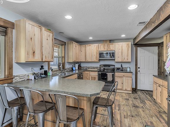 NO SIGN ON PROPERTY Beautiful setting on almost 10 acres in Corbett. Immaculate home and property. Open floor plan, kitchen has eat bar & stainless steel appliances. Park like setting with huge covered patio great for entertaining, play area, barn, and huge 3600 sqft finished shop.