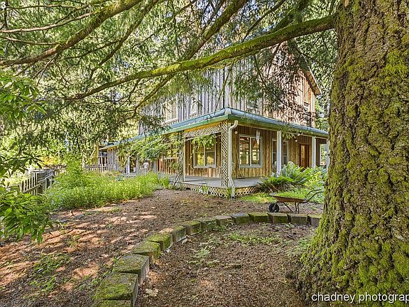 Rare opportunity in Corbett! Indoor/Outdoor Paradise with a custom-built timber frame home on just over 20 acres. Six-level acres with a 30X60 barn are perfect for farming or animals. This low wind location offers incredible peace and privacy with 100 acres of Weyerhaeuser forestland as your neighboring property. The orchard boasts apple, pear, cherry, and plum trees. Enjoy a fenced 25X75 garden area with raised beds. A 10X12 greenhouse is located at the back of the house. Newer 16X28 Wolf PVC back decking with a cedar railing offers outdoor living space for entertaining family and friends as they take in the beautiful property. An inviting front porch with a swing welcomes you into the four-level home with gorgeous Douglas Fir beams, a Hemlock ceiling, and Big Leaf Maple plank flooring. It feels like a lodge! With 4 BD and 3 1/2 BA, there is plenty of space for possible multi-generational living. A spacious kitchen has a wood-fired soapstone heater/bake oven and a separate cooktop. Wash fresh garden produce in the double sink in the prep room/pantry leading into the kitchen. The adjoining dining area is oversized. The primary suite features a sleeping loft with a skybridge to a bonus room living space. The home is move-in ready with a built-in vac system, washer and dryer, certified woodstove, wood-wrapped windows, two water heaters, two ceiling fans, nine skylights (five open!), and numerous storage areas throughout the home. Located in the Corbett School District and near numerous hiking trails in the Columbia River Gorge. See the attached floor plan and virtual tour and then come make this your forever home!