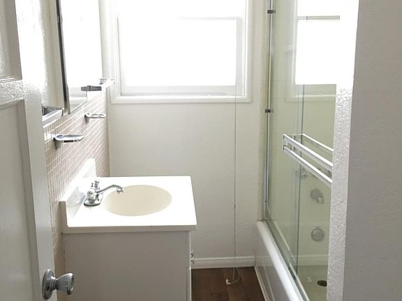 The photos of the large, eat in kitchen and bathroom are from an identical unit next door. The floors are so nice.