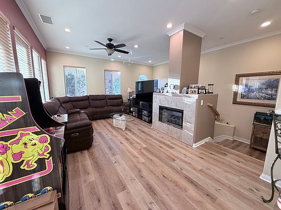 Immaculately maintained townhome in the highly sought-after gated community of Paseo Del Sol. Boasting upgraded flooring and elegant crown molding throughout, this home exudes style and sophistication. The spacious chef's kitchen features modern finishes and a breakfast bar perfect for casual dining or entertaining. Included appliances washer, dryer, and fridge offer added convenience. Step outside onto one of two private balconies, ideal for enjoying outdoor dining or simply relaxing. Plus, with a two-car attached garage, you'll have ample space for both vehicles and storage. This beautiful townhome next to shopping and eateries and is truly a welcoming place to call home.