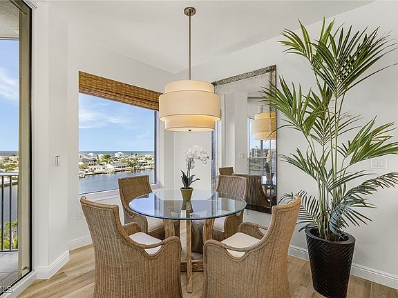 Stunning and fully updated 3 bed/2bath 7th floor condo showcasing panoramic double water views of the Gulf and Estero Bay! Located in Sunset Gulf in the gated Waterside at Bay Beach community. This condo is truly a must see! Take the private elevator to your secured personal foyer. From the moment you enter you will notice the many upgrades. The kitchen has been opened up allowing for a spacious floorpan, perfect for entertaining and enjoying the spectacular views. The kitchen also features new cabinets, quartz countertops and backsplash, lighted glass accents and new appliances. Wake up in the large primary bedroom to gulf views, and enjoy the 2 walk in closets and ensuite bathroom with dual sinks, walk in shower and soaking tub. The split floor plan offers privacy for guests with 2 guest bedrooms and bathroom. One of the oversized lanai's has unbelievable Gulf views with 3 entry points from the living room, dining room and primary bedroom. The second Lanai shows unobstructed view of Estero Bay and is accessible from both guest bedrooms. Have peace of mind with impact resistant doors and windows. Amenities include: 2 Guest Suites, Fitness Center, Community Room, Community Pool, Tennis Courts, Fishing Pier, Walking Paths, Pickleball, Bocce Ball, Chipping Greens, Golf Driving Cage, Deeded Beach Access and Beach Parking. Close to restaurants, shopping, Lovers Key State Park, Bonita Springs, RSW Airport and so much more! Boat slips available for purchase.