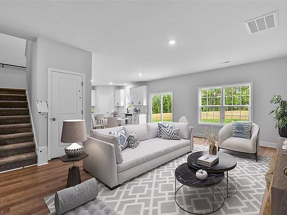 New construction in Fearrington Acres—modern style meets quiet country space on nearly 0.7 acre. The Bellemont plan opens with a light-filled living area that flows into a quartz-topped kitchen with shaker cabinets, tile backsplash, island, pantry, and stainless appliances. A main-level flex room adds easy options for work or play. Upstairs, four spacious bedrooms include a primary suite with dual closets and a private bath. Luxury vinyl plank flooring adds warmth and durability. Two-car garage, energy-efficient heat pump, and well-and-septic utilities keep life simple. Minutes to Lewisville, Pfafftown, Yadkinville, and Winston-Salem, with Forbush Elementary less than a mile away. HOA $55/mo. Elevation B1 with brick accents—completion expected late 2025.*Up to $6,500 cc credit w/ buyer use of preferred lender, attorney & title company.