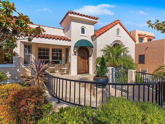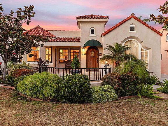 Welcome to 1927 Spanish Colonial style, nestled on an approx 0.40-acre canyon-view lot in the heart of historic Kensington Point. This residence radiates the timeless charm of the 1920s with a red tile roof, an elegant arched medieval entry and a dramatic reverse Palladian window. Inside, has an abundance of natural light, original hardwood floors, coved ceilings, and a beautiful Batchelder tile fireplace. The home's main living area is 2,093 sqft with 3 beds and 2 full baths with Toto toilets, plus a sitting area off the primary suite. The updated open-concept kitchen is a chef's dream, featuring slab granite counters, subway tile backsplash, large island, stainless steel appliances, New AGA 48" induction cooktop with a hood and a charming breakfast nook with a bay window + built-in storage, along with a large built-in hutch/prep area. Large backyard offers a new turf lawn, multiple patios, a well-maintained jacuzzi, all set against a beautiful interior canyon rim. There is a long driveway with ample parking plus a detached 336 sqft casita with a half bath, perfect for guests or a home office. Significant recent upgrades include a new roof, a paid-off solar panel system, iron railings, awnings, a new furnace and all ducting, NEW CHIMNEY and a whole-house water filter. The home is equipped with central heat, A/C, and a whole-house exhaust fan. Wheelchair accessible with well-built ramps, wider doorways, no interior steps.