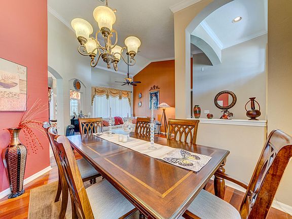 2006 Windward Homes with 3 bedrooms, 2 bathrooms and a 2 car garage. This well maintained home features formal living and dining rooms with wood flooring, eat in kitchen with breakfast bar, granite counters, 42in cabinets and ss appliances overlooking the family room. Master suite with upgraded tile, dual vanities with granite tops and separate garden tub and shower, secondary bath also has upgraded tile and granite tops. Screened lanai is tiled and overlooks fenced back yard and driveway and entry are finished with pavers. Security cameras and inside laundry with washer & dryer included. 1,841 Living sqft, 2,611 Total sqft. Centrally located in gated Sterling Hill with 2 club houses, 2 swimming pools, exercise facility, tennis and more.