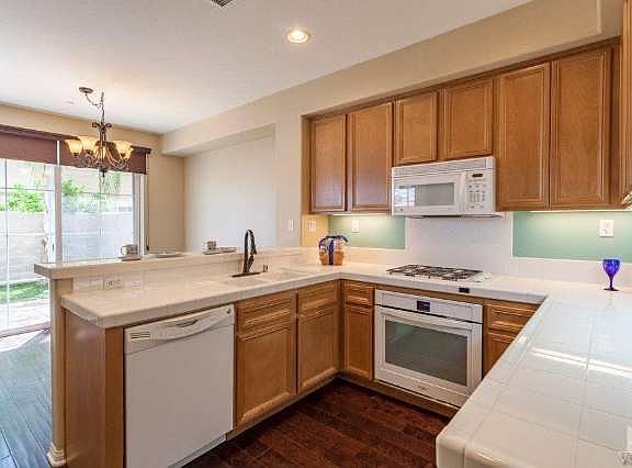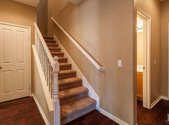 This desirable 2 story Paseo Del Sol end unit townhome is located in a gated community. It boasts 4 bedrooms and 3 baths with 1746 Square Feet. Enter into your private front door with upgraded wood floors. Your living room features a gas fireplace, bright windows. The dining area is open to the living room and kitchen for entertaining. The downstairs bedroom has been opened to use as an office or den. The open kitchen includes a breakfast bar. The slider leads to the fenced rear yard with stamped concrete patio and artificial grass for year-round greenery. Finish off downstairs with a full bath and direct access to your 2 car garage. Upstairs you will find the laundry room. Large open and spacious master bedroom, step into the master bath with separate tub and stall shower and a spacious walk-in closet. Finishing off the upstairs are two additional nice size bedrooms and another full bath. Enjoy the community pool, spa and playground. This beautiful complex is close to shopping, dining, entertainment, civic center and easy freeway access.