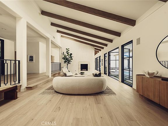 Welcome to this stunning, sprawling residence in the Hills of Encino, offering timeless, luxurious design and exceptional craftsmanship. From the moment you arrive, the smooth stucco façade with limestone accents delivers striking curb appeal. Travertine steps lead you to an impressive ten-foot glass entry door, setting the tone for what awaits inside. The foyer is bathed in natural light, thanks to multiple iron French doors and strategically placed skylights. The great room is anchored by an expansive fluted architectural fireplace, creating a sophisticated, inviting ambiance. Throughout the home, premium finishes, including French oak engineered hardwood flooring. A massive living room faces the backyard seamlessly flows into the chef’s kitchen, highlighted by a large island with fluted wood paneling, abundant white oak cabinetry, top-of-the-line Thermador appliances, and a walk-in pantry for added convenience. Adjacent to the kitchen, a private family room offers a cozy retreat separate from the main entertaining areas. A central hallway leads to two bedrooms, a formal dining room featuring a built-in wine rack, a stylish bathroom, and a utility room with laundry facilities. In the southern wing, you’ll find two en-suite bedrooms and the expansive primary suite overlooking the backyard. The primary bathroom is a showstopper, with dual showers featuring travertine checkered floors, limestone flooring, and a custom dual vanity topped with Arabescato Corchia marble. The custom walk-in closet provides generous storage and organization. The low-maintenance backyard is perfect for entertaining, with travertine flooring throughout, a large pool and spa, built-in barbecue, and integrated speakers. An additional spacious side yard features a pergola-covered patio with peek-a-boo views. For added convenience, there is an additional bathroom with access from the side yard for those using the pool. This home offers a luxurious, timeless aesthetic sure to impress, all within close proximity to the best shopping and dining the Valley has to offer.