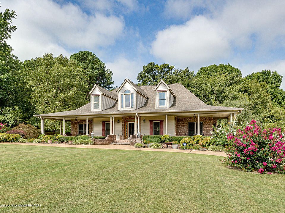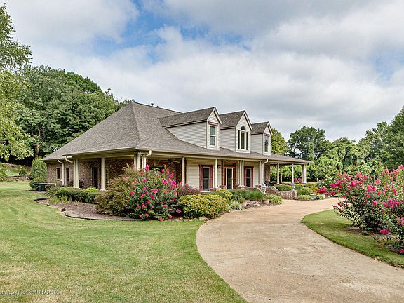 Check out this lovely five bedroom, three bathroom home in the Lake Cormorant School District. This lovely home sits on over seven acres of land and has wonderful curb appeal with a well maintained lawn, inviting wrap around front porch, and a wrap around driveway. Once you enter the home, you will notice the open floor plan that offers sight lines through to the dining room, great room, and kitchen. The large great room boasts high ceilings, recessed lighting, crown molding, a brick fireplace and mantle, and tons of natural light. The sizable eat in kitchen features a wealth of cabinet and counter top space, granite counter tops, a breakfast bar, a pantry, and beautiful bay window views of the property. The master bedroom offers plenty of space for all of your furniture, plenty of natural light, and an attached master bathroom. The master bathroom offers double vanities, a jetted tub, and a walk in shower. Additionally downstairs, there are two more large bedrooms, another full bathroom, and a laundry room. Upstairs, there are two spacious bedrooms, another full bathroom, a study, and a very large game room. This home offers details such as crown molding, chandeliers, and built in bookshelves throughout the house. The backyard provides an extended, covered patio area, a shop, and relaxing views of the property. The home is the perfect get-away from the city and a MUST SEE! Call us today to see it!