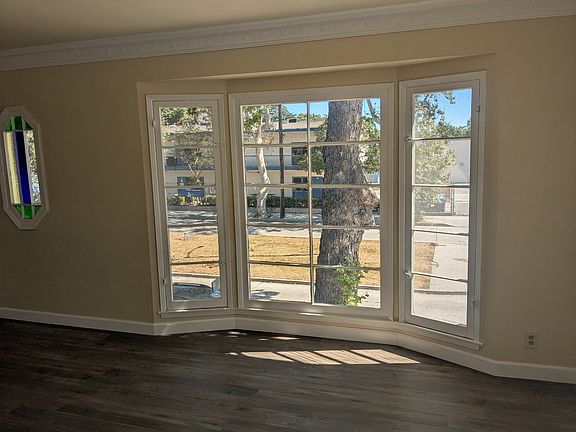 full length windows in rooms bring plenty of sunlight and views of the surrounding tree lined street.