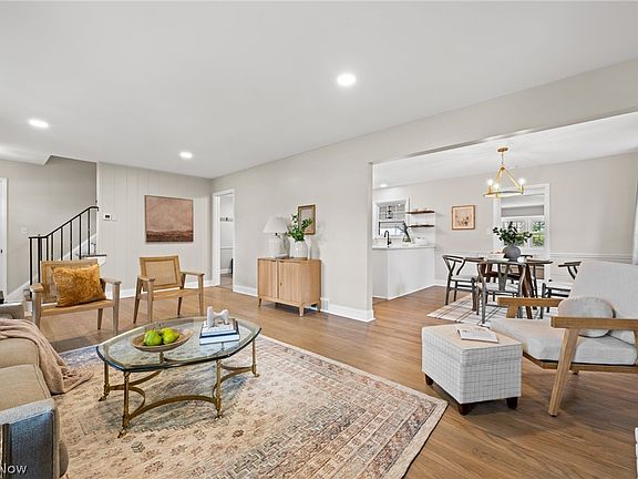 Nestled in a quiet Rocky River neighborhood, this cozy Cape Cod has undergone a massive renovation and is now living up to its full potential. This home has everything that a family could want. There's an updated, kitchen/dining room with all new appliances, perfect for entertaining and family meals, a bright and spacious living area with gas fireplace, four large bedrooms (one of which is on the first floor), a den/office, three full baths, multiple storage areas, newer vinyl windows, updated electrical panel, finished basement rec room with wood burning fireplace and a tidy yard with covered patio and mature landscaping. Original architectural features, including the refinished original hardwood floors, add to the charm of this house. Don't miss this one!