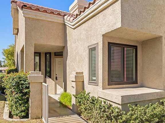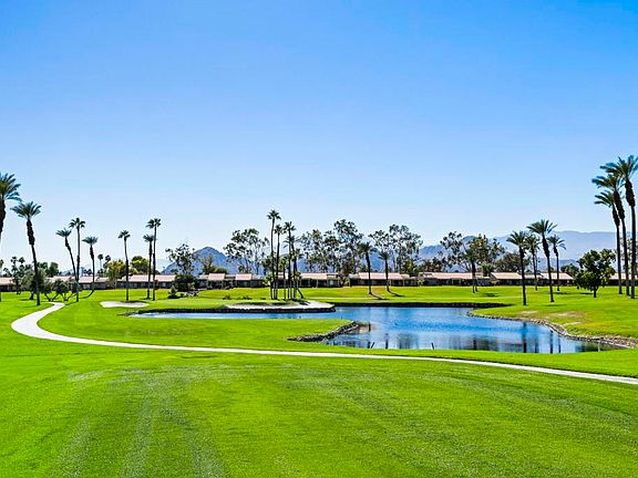Welcome to Palm Desert Resort Country Club, where resort living meets spectacular views. This beautifully upgraded Augusta model sits on a prime lot overlooking the lake, mountains, and the 6th fairway--one of the community's most scenic settings. The remodeled kitchen features granite counters, stainless appliances, and a refaced fireplace. The primary suite offers dual vanities, a skylight, soaking tub, and separate shower, while the guest bath includes a stylish walk-in shower. Tile flooring flows throughout the home, with carpet in the bedrooms, dual-pane windows, and newer A/C and furnace providing comfort year-round. Located in a 24-hour guard-gated community with 20 pools and spas, clubhouse, golf, tennis, and pickleball available--this home is move-in ready and ready to impress. Photos to come.