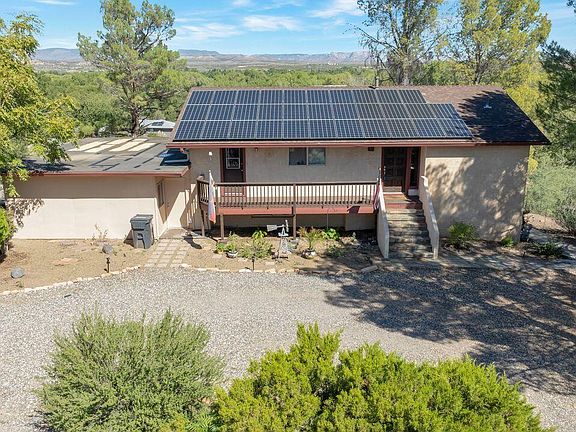 Priced to sell! Solid 4-Bed/2-Bath split-level in Cottonwood's Verde Village sits on 1+ acre with panoramic views of the Verde Valley and Sedona. Clean, functional, and ready for your touch - ideal for first-time buyers or investors. Upstairs features a cozy fireplace, primary suite, laundry and kitchen with stainless appliances. Downstairs offers 3 bedrooms, 1 bath, living area and private entry - perfect for in-law suite or rental. Enjoy updated 2025 decks for coffee or gatherings. Features newer roof, leased solar, RV parking, 3-car garage, no HOA and irrigation from Cottonwood Ditch bordering the property. Prime location minutes to Sedona, Old Town Cottonwood and walking distance to the Verde River and Greenbelt.
