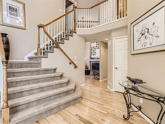 Fall in love with the elegance of this meticulously maintained 4-bedroom, 4-bath two-story residence in the highly desirable Summit Park neighborhood. Cherry Creek schools! Original owners have updated this home with custom finishes and warm-toned paint throughout. Upon entry, discover a grand staircase and newly refinished hardwoods while admiring the sun-filled living room showcasing vaulted ceilings, plantation shutters, and new wall lighting sconces. Step through the tapered columns into the formal dining area that opens to the renovated kitchen featuring newer granite countertops, stainless steel over-sized sink, abundant cabinetry, a pantry closet, recessed and pendant lighting, breakfast area, and quick access to the flagstone patio where you can sip your morning coffee. Entertain friends in the spacious living room enhanced with steep vaulted ceilings, custom granite surround gas fireplace, refinished hardwoods, plantation shutters and custom designed drapes, and a chic chandelier. An updated powder room and laundry area round out the main level. Up the stairs, you’ll be impressed with the enormous primary suite with vaulted ceilings, new paint, and plantation shutters. The adjoining en suite bath has been remodeled with leathered granite countertops, double sink vanity, new cabinets, marble tile floors, marble tile shower with glass enclosure, new pendant & recessed lighting. It connects to the sizable walk-in closet with custom-built cabinets and shelves. Two additional well-sized bedrooms are also on the 2nd floor. The hallway full bath has been upgraded with leathered granite counters resting on wide plank tile flooring. Look forward to movie nights in the lower level great room featuring new Berber carpet, built-in shelves, guest bedroom w/ egress, and new bath with granite countertop vanity & tile floors. Newer A/C and exterior wood siding (2019). Near I-225, Parker Rd, I-70, I-25, DTC, shops, parks, restaurants, and schools. Come for a tour today!