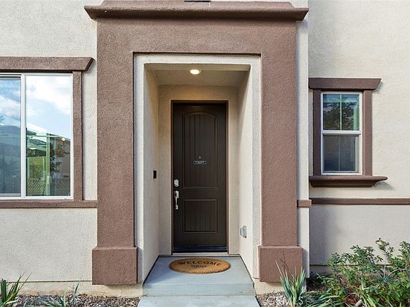 Welcome to Solera by Lennar. This highly upgraded 2 bedrooms, 3 bath 1377 square foot with an attached two car direct access garage is the beauty of the community. A unique option for this home is that it is an end unit with only one common wall, so you actually have a private front door entrance. Upgrade flooring throughout the home, stainless steel appliances, with a Bosch dishwasher. walk in pantry, kitchen island, blackout window shades, energy efficient feature solar panels, tankless water heater, upgraded cabinet area for the spices etc. The master suite is so large and clean you feel that you are in a retreat, with an oversized walk-in closet. Upstairs laundry room, and a second master retreat with a patio area overlooking the pool area and beautiful skyline views. Hurry, this home is in pristine condition and looking for its next owner... (.Whole house water filtration system, and Quiet Cool Fan.)