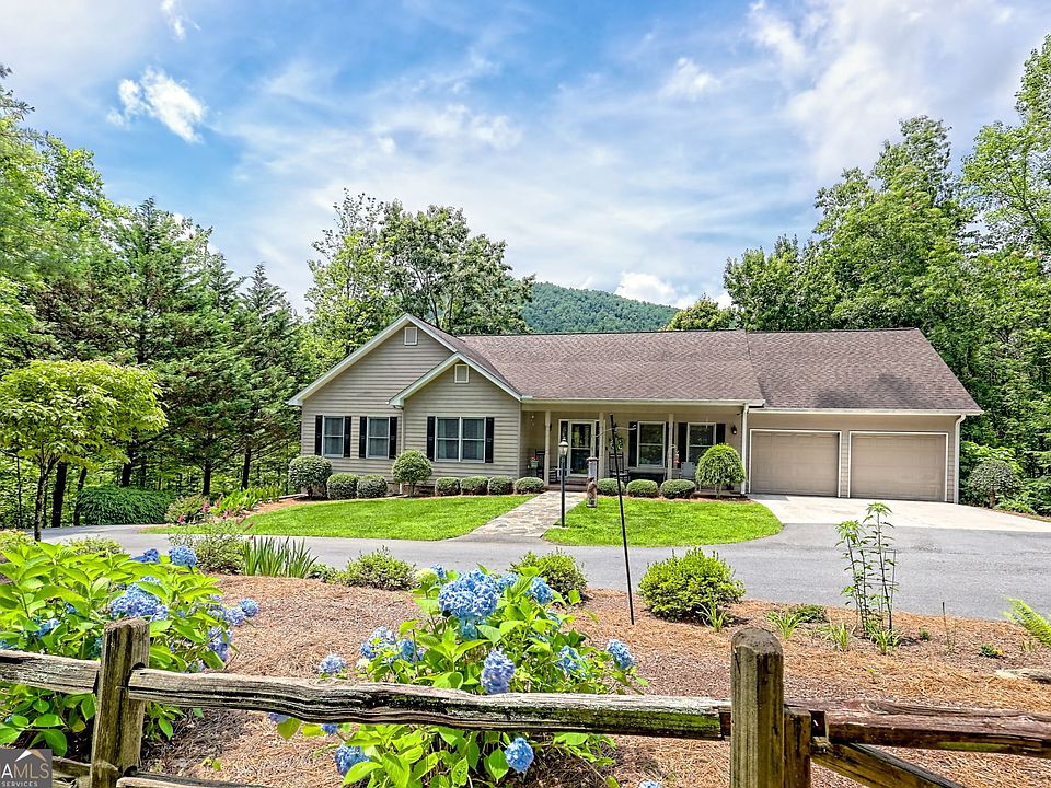 Nestled in the highly desirable Bridge Creek community, this meticulously maintained 4,400 sq ft, 3-bedroom, 3-bath home offers comfort, versatility, and stunning mountain views. The property features lush, landscaped gardens and the headwaters of Stonewall Creek running along the edge, creating a peaceful and private setting. The main level offers a bright, open living space, full kitchen, formal dining room, sunroom, and generously sized bedrooms. On the terrace level, you'll find a second full kitchen, game room, screened porch, full bath, and a flex room-perfect for in-laws, teens, guests, or a home office setup. Additional highlights include a two-car garage, paved driveway, multiple outdoor living areas, and a thoughtful layout ideal for multi-generational living. With its blend of natural beauty, flexible space, and quality upkeep, this home is a rare gem just minutes from downtown Clayton.