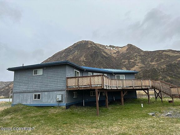 Stunning Views from this Riverfront Pasgagshak Home with a riverside beach. 2 master suites with sliding glass doors to the front deck, a large open-concept living room & kitchen. 1200sqft unfinished ''basement'' area might be a great shop area, rec room, or family room. Oceanfront beaches are across the street and accessed via public easement. Showings begin March 15th for pre-approved buyers.