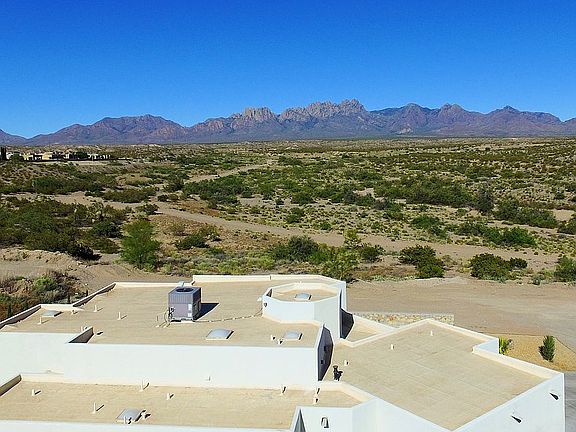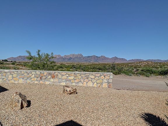 If you are looking for a house with stunning, unobstructed views of the Organ Mountains, this is the perfect home! The wall of windows & sliding door in the living area allow for a picture perfect view of gorgeous sunsets, sunrises and full moon nights. The open living design is trendy and sleek. Better than new because this owner has recently invested $80,000 worth of upgrades to include all new flooring, interior and exterior paint, new roof in 2017, complete master bathroom remodel, xeriscaped yard with French drains, custom automated window treatments in living room and bedroom, Vivant Sky Security and home automation system. The spacious rotunda shaped foyer with high ceilings is welcoming! Living area has tray ceilings w/ wood beams. Surround sound speakers located in office, kitchen, dining area, master bathroom and patio. Kitchen includes Merillat Therofoil(r) cabinetry and marble countertops. Spacious backyard has plenty of room for a pool. Clean epoxy painted garage is another plus!