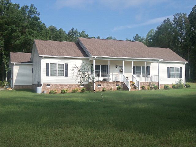 JUST REDUCED! LEASE/PURCHASE AVAILABLE. Spacious modular home with open floor plan! Home is nestled on 1.89 acres on a brick foundation with a two car attached garage. This four bedroom, two bath has a large kitchen which is open to the dining and living areas. The kitchen has an abundance of cabinetry along with a dishwasher, electric range, microwave, and refrigerator. The convenient laundry room is located directly off the kitchen. Carpeted living room has fireplace with gas logs. The master bedroom has its own private bath with a double vanity, large tub and separate shower. Double car garage and a third smaller garage door for lawn equipment. Large front porch and rear deck overlooking a country setting.