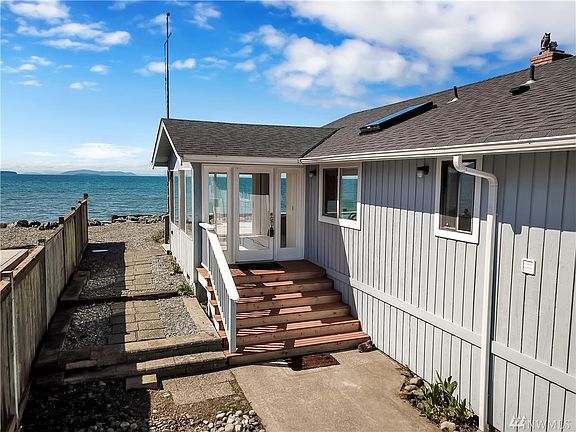 Low bank waterfront home on Sandy Point with views across the Strait of Georgia. Many new windows look out to the sound, new roof, open kitchen with eating bar, propane fireplace in living room creates additional ambiance. Large deck for enjoying friends company and sunsets. Views of Mt. Baker from master. Large 2 car garage for kayaks and crab pots. Perfect for year around living or VRBO. Community amenities include Clubhouse, summer heated pool, tennis courts and boat launch.
