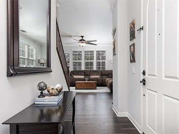 Upgraded turnkey 3 bedroom, 2.5 bath, located in the quiet community of Citrus Springs at Dos Lagos. Kitchen was recently remodeled with custom shaker cabinets and timeless finishes. Large master suite has a walk in closet and attached remodeled bathroom with oversized shower. Upstairs office space has custom built-in desk and cabinets for study or work. The bonus room downstairs can be used as a game room, sitting area or easily be turned into a 4th bedroom!The backyard features a custom patio cover with electrical outlets and ceiling fan, making it great to entertain family & friends. Property backs peaceful community parks and quick walk to pool area. Additional features include: LED recessed lighting, LTV flooring throughout, carpeted bedrooms, custom paint, new water heater, remote control ceiling fans, and whole house fan. This community has 3 parks, 2 play grounds, pool and spa. Close to freeway, shopping, dining, parks, award winning schools, community activities and more! Quick commute to Orange County