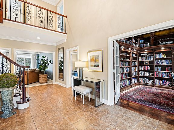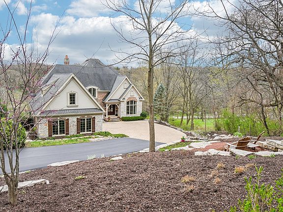 Tucked away at the end of a quiet, private road, this exquisite home stands like a hidden retreat embraced by nature. Towering trees line the drive, offering both shade and seclusion.As you approach, you'll be impressed by the stone and brick exterior of this custom home. Step inside and you are greeted by a large 2 story grand foyer, Formal dining room and hand crafted library, adorned with floor to ceiling custom bookshelves. In the gorgeous Living room, natural light pours in through oversized windows. The fireplace and trayed ceiling add to the elegance. The kitchen has been recently remodeled offering plenty of custom cabinetry, quartz counters, dining space large walk in pantry,and access to the newer deck~ The main floor also allows for an additional "flex space" for your family room, office or playroom~The spacious primary suite with large bedroom and trayed ceiling,affords you "his and her" vanities, separate tub and shower and huge custom closet, with two additional closets in the bedroom~3 additional bedrooms, all with private updated bathrooms~The heart of the home extends to a beautiful walkout basement, thoughtfully designed as both a second living area and an entertainer's dream, hosting a home theater, large recreation room with custom bar, 5th bedroom and a luxury full bath~ Large glass doors open directly onto the patio, where the outdoors invites you to linger. Here, a stunning in-ground pool shimmers beneath the open sky, surrounded by lush landscaping and cozy lounge areas that feel like a luxury resort. The outdoor space flows seamlessly, offering ample room for dining, relaxing in the hot tub, or gathering under the stars. A built-in grill and fire place promise unforgettable evenings, whether it's an intimate night for two or a lively summer celebration with friends.This home isn't just a place-it's a private escape, blending sophisticated style with the peaceful rhythm of nature. The paver driveway is heated, so no need to shovel the drive after a snow! RECENT UPDATES:KITCHEN 2020~POOL LINER 2021~WELL PUMP 2020~SUMP PUMP (2) 2021~SECOND FLOOR BATHROOMS 2020~NEW CARPET ON SECOND FLOOR 2020~ NEW MAIN FLOOR CARPET 2019~GARAGE DOORS 2021~BACK DECK REPLACED 2019~