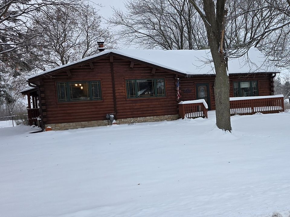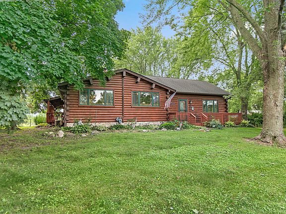 Rustic and authentic yet modern ranch home, this 3-bedroom, 2.1-bath log cabin offers the perfect blend of charm and comfort. The living and dining area features a stunning floor-to-ceiling stone fireplace, creating a warm and inviting atmosphere. The updated kitchen boasts a spacious island and custom cabinetry. Set on 4 acres with a stocked pond and mature trees, the property offers serene privacy. A partially fenced area adds functionality, while the 2-car detached garage includes an attached 2-stall barn with a tack room-perfect for equestrian enthusiasts or hobby farmers.