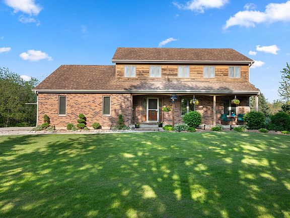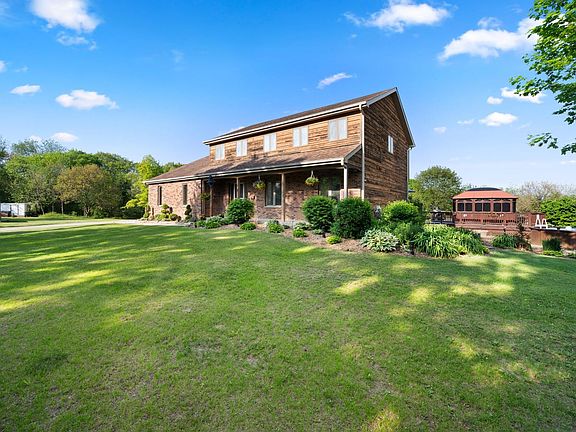 Perched on the Highest Point in Kane County - Stunning Views, Expansive Living, and Unmatched Outdoor Space! Welcome to your own private retreat located in St. Charles District 303 school! Nestled on 2.83 scenic acres, this two-story home is perched at the highest point in Kane County, offering breathtaking panoramic views in every direction. Step onto the inviting front porch, perfect for relaxing and welcoming guests. Inside, the foyer opens to a formal living room with a large picture window, and a spacious dining room ideal for gatherings and special occasions. The eat-in kitchen is a chef's delight, featuring an abundance of oak cabinetry with crown molding, solid surface countertops, tile flooring, stainless steel appliances, and direct access to the expansive deck-perfect for seamless indoor-outdoor entertaining. The family room is warm and welcoming, showcasing a brick wood-burning fireplace, built-in white shelving, a sun-filled bay window, bar sink, and rich hardwood floors-a perfect place to unwind. Function meets style in the mudroom, equipped with a built-in bench, shoe and coat storage, and easy access to the outdoors, keeping daily clutter organized and out of sight. Upstairs, the private master suite features a spacious walk in closet with a built in vanity, 2nd closet, and a full en-suite bathroom. Four additional bedrooms, full bathroom and conveniently 2 floor laundry room. The finished basement offers incredible versatility with a spacious rec room with exterior access, a full bathroom, potential for a kitchenette, and a flex space ideal for 5th bedroom, gym, or entertainment area. The true showstopper of this property is the expansive three-tier deck with bar, complete with an above-ground pool and boasting an impressive 1,481 square feet. It's perfect for relaxing, dining, or hosting unforgettable gatherings-all while overlooking peaceful, tree-lined surroundings. The backyard features firepit with water source, a swing set, a fort, and a trailer with electricity for storage needs. This backyard is more than just a yard-it's your personal paradise! Updates: Above ground pool/filiation system, finished basement (2024), invisible fence (2023), Well pump, water softener with filtration system, air compressor pipping (2022), 2 Furnaces, 2 A/C units, hot water heater (2021), 1st floor mudroom (2021), 2nd floor carpet, laundry room, insulated/drywall garage plus 90 amp panel (2020), washer and dryer (2019), 1st floor windows, stainless steel kitchen appliances (2017). If you're seeking a close proximity to all that Elburn and LaFox has to offer plus space, look no further! Close to shopping, restaurants, train stations, I-88 and more!