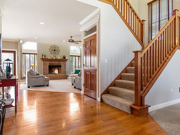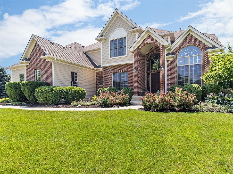 Hello Gorgeous! This 3,100+ sq ft home on a 1.3 acre professionally landscaped lot in Sunset Villa Estates, is all dressed up and ready to go! Stately brick facade, new Hardie Board siding, huge 3-car side load garage with stairs leading into basement, water lines run under foot for radiant heat & gas line ready for overhead heater. The stunning backyard with paver patio, firepit & retaining wall is surrounded by mature trees & is South facing as an extra bonus. Step inside to find a well executed & uniquely designed floor plan featuring 9 foot, vaulted & tray ceilings, hardwood floors, solid wood banisters, interior transom windows, extensive crown moldings, wainscoting & millwork, neutral decor and tons of natural light. Newer carpet on the main level, stairs and upstairs hall. Open concept living room off of the foyer & a spacious formal dining room includes a bay window & butler's pantry which leads into the kitchen. The gourmet eat-in kitchen has a granite center island with breakfast bar, stainless steel appliances, double oven, newer dishwasher, 42" custom cabinetry plus a walk in pantry. Warm and inviting family room with brick hearth fireplace & backyard views is the perfect spot to relax with family & friends. The main level private office, laundry room and powder room complete the main level. Upstairs, bedroom sizes are generous and include the primary suite with deluxe private bath including double bowl vanity, rainfall shower, separate tub & separate water closet. Bedroom 2 includes it's own private bathroom, bedrooms 3 & 4 share a Jack and Jill bath. The full unfinished deep pour/walk out basement (walks up into the garage) has 8 foot ceilings, water lines installed in the foundation for radiant heated floors, 4 large fire escape/egress windows and plumbed for a 4th bathroom. The antimicrobial furnace with Enviracaire ultraviolet light, humidifier & chlorinator system for well water purification, complete this beautiful home. Elburn address & St. Charles school District 303! I don't think this will last long;Schedule your appointment today!