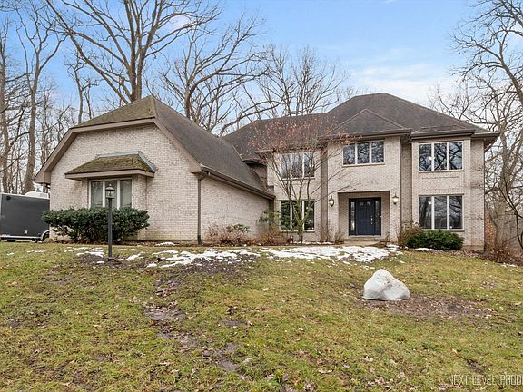 Welcome to your dream home nestled on over 3 acres of picturesque landscape, complete with a tranquil stocked pond and meandering walking trails. This stunning property, situated on a peaceful cul-de-sac, offers an unparalleled blend of luxury, comfort, and natural beauty. The 2-story foyer welcomes you into the open floor plan! The sunken living room has crown molding and a recessed window. Formal dining room offers laminate wood floors, crown molding and custom ceiling treatment. The heart of the home is the expansive 2-story family room, featuring a floor to ceiling brick fireplace that sets the perfect ambiance for gatherings with friends and family. Adjacent to the family room is a gourmet kitchen, complete with a massive island, SS appliances and eating space with access to a large deck overlooking the pond and gorgeous wooded views! The sunroom beckons with its panoramic views and direct access to a private deck, where you can enjoy the serene surroundings and breathtaking sunsets. The main floor includes a convenient laundry room with a built-in boot bench. Retreat to the main bedroom, which boasts a serene sitting area, a spectacular custom 32x10 walk-in closet with built-ins accessible through a pocket door, and a luxurious private bath with a dual sink vanity, whirlpool tub, and shower. The upstairs 28x11 hallway has 2 built-in desks. Three spacious secondary bedrooms offer ample closet space. The full hall bath has a dual sink vanity and shower/tub. The finished walk-out basement offers additional living space with a spacious rec room, an extra bedroom/exercise room, and plenty of storage, providing endless possibilities for customization and relaxation. For car enthusiasts or those in need of ample storage space, the home features a 3-car garage. Enjoy outdoor living on a large deck where you can entertain guests or simply unwind while taking in the breathtaking views of the expansive property. Experience scenic year-round beauty -- Schedule a showing today!