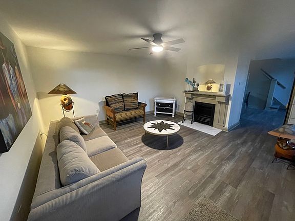 First floor living room has wood grained floors, decorative fireplace and brand new kitchen with glass mosaic backsplash. All stainless steel appliances are also included. Second floor master suite has a full bath with linen storage and walk-in closet.