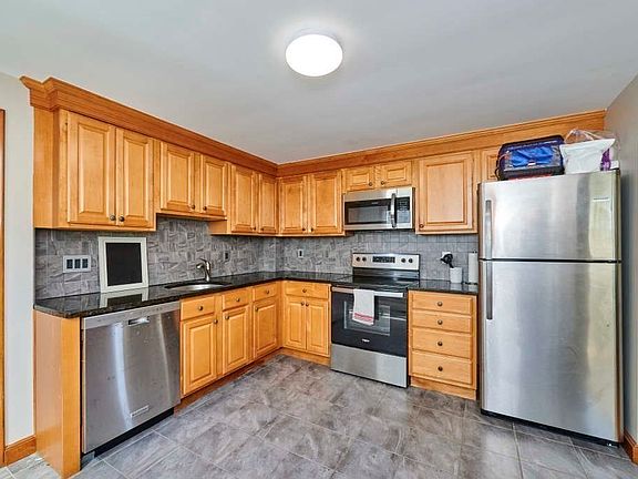 Solid, well-maintained brick-front 12rm two-family offers sun-filled living rooms with recessed lighting, updated kitchens with wood cabinets/granite counters/stainless steel appliances, formal dining areas with built-in cabinets, 3 bedrooms/unit with double-sized closets, tiled baths, and private rear enclosed porches plus a small additional side entry enclosed porch. An extra-wide brick paver driveway leads to an oversized 2 car direct entry garage with automatic door openers. Spacious backyard with patio area. Conveniently situated near the new Belmont Middle and High School. Short walk to a variety of stores, eateries, and public transportation.
