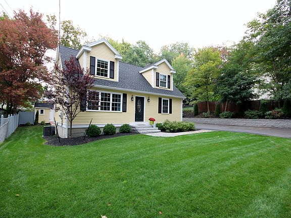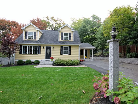 BETTER than new construction 3 bed 2 bath custom dormered cape! Completely remodeled and updated in 2011. Features include hardwood floors throughout, Granite counter kitchen with stainless steel appliances and custom cabinetry with Island seating. Large front to back bedrooms on the second level and a large bedroom on the 1st floor. Top quality finishes include custom doors, windows, moulding, lighting, fixtures and siding. The full basement allows room for future expansion and or storage. 200 amp electrical service,central AC and rinnai tankless hot water system for optimal efficiency! Very large back yard with shed, professional landscaping, stone wall, granite steps and 21x16' trex deck for outside entertaining. Don't miss this one! nothing to do here but move in! Super convenient location on the Burlington line!